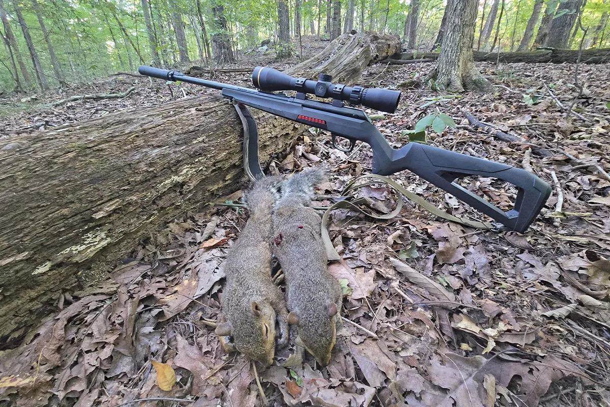 The muted report with the Banish-22 is nothing but a good thing for small game hunting , especially early in the season, when the leaves are thick and a spooked squirrel can disappear by moving only a few inches. Shotgun shooters know that it doesn’t take long to run feeding squirrels out of even the best hickory tree once the blasting begins. To be clear, they can still be spooked by the report of a suppressed rimfire, too—but if you sit still, the lull in the action rarely lasts for long.